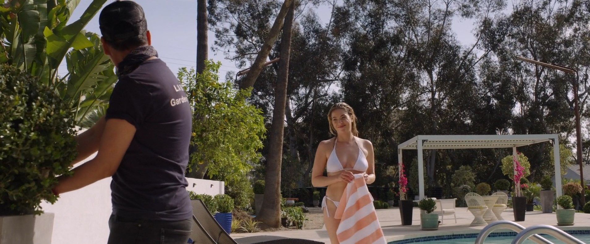 Эшли Бенсон — американская актриса, известная по ролям в сериалах «Дни нашей жизни» и «Милые обманщицы». Она снялась в фильме «Отвязные каникулы», где продемонстрировала обнаженное тело. Актрису неоднократно фотографировали папарацци, включая моменты отдыха на пляже.