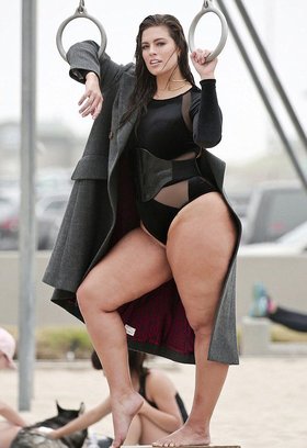 Эшли Грэм участвует в фотосессиях для мужских изданий, включая «Максим» и V Magazine, где позирует обнаженной. На некоторых снимках она прикрывает грудь руками, а также появляется на подиумах в нижнем белье.