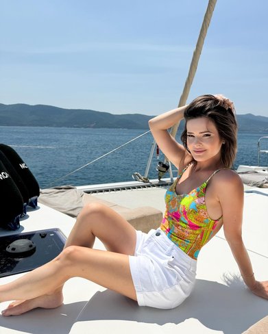 Пескова активно делится фотографиями своего отдыха за границей. В своих публикациях она часто демонстрирует купальники и наряды, подчеркивающие ее фигуру.