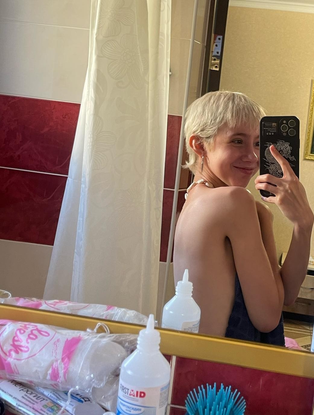 В сериале «Пансион» она впервые появилась в откровенной сцене, после чего активно делится фотографиями на своем аккаунте в Instagram. Также актрису можно увидеть на фотосессиях в стиле ню.