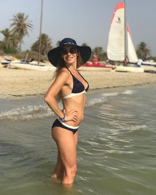 Актриса активно делится фотографиями на своем Instagram, где публикует снимки в нижнем белье и купальниках. Один из её фотосетов включает кадры в бордовом белье.
