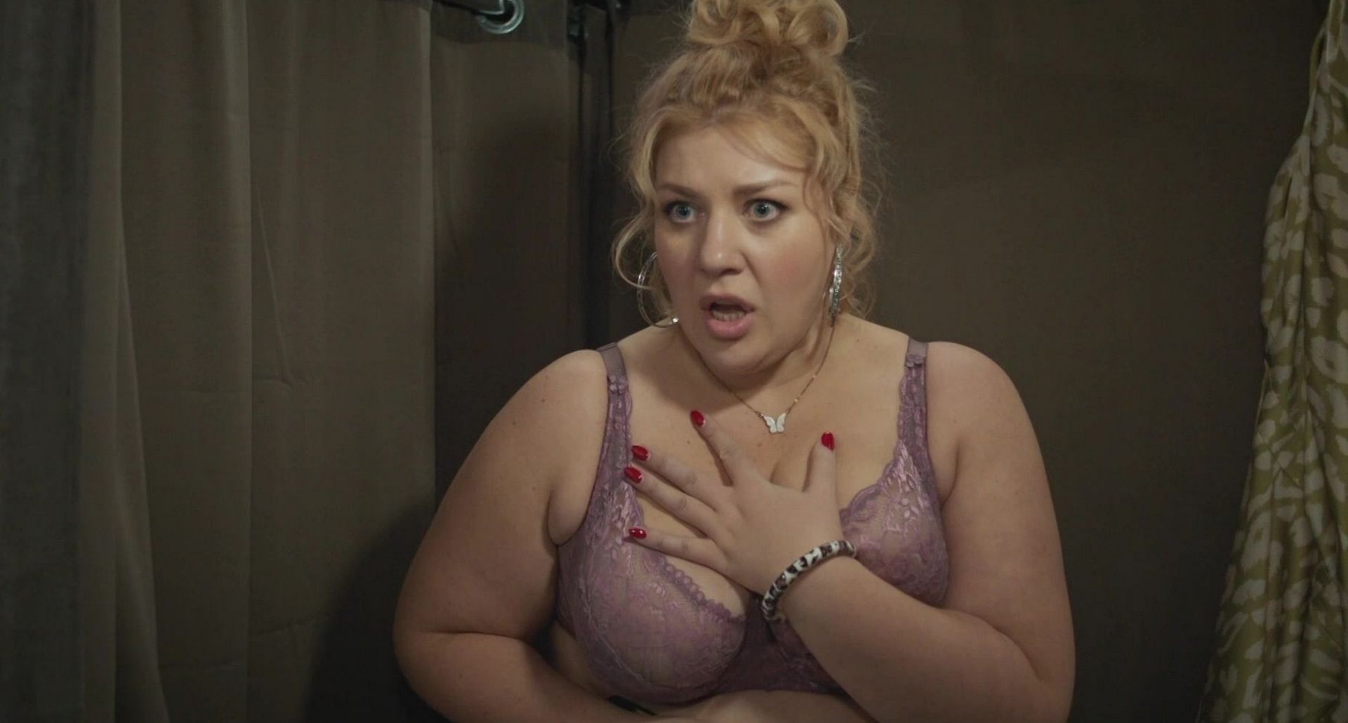 Российская актриса Лиза Гончаренко известна благодаря своим ролям в сериалах «Жуки», «Нежность», «Медиатор» и «Галя, у нас отмена!». Она имеет фигурку плюс сайз и активно демонстрирует ее в своих работах.