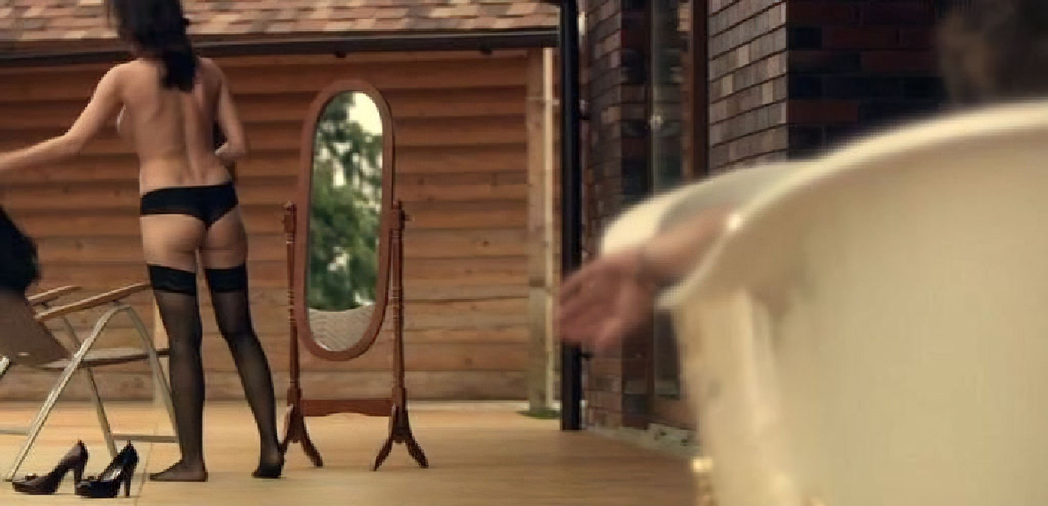 Также откровенные эпизоды с актрисой содержатся в лентах «Кровные узы» и «Выход», где она предстает в нижнем белье и купальнике.